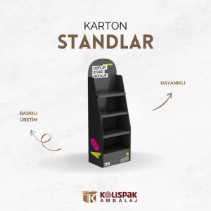 Müşterilerinizi cezbeden bu görsel sunum, marka imajınızı güçlendirir.Doğa ile dost malzemeÇevresel açıdan duyarlı bir yaklaşım sunan standlarımız, geri dönüştürülebilir kartondan üretilmektedir. Kolispak, doğayı korumanın yanı sıra müşterilerinizin beklentilerini de dikkate alarak sürdürülebilirlik prensibini uygular.Hafif ve kolay taşınabilir.Karton standlar, hafif yapılarıyla hem taşıması hem de kurulumu kolaydır. Bu özellik, standların çeşitli satış noktalarında veya etkinliklerde kolayca kullanılabilmesini sağlar.Kişiselleştirilebilir bir tasarım olarak düzenlenebilir.Kolispak’ın karton standları, markanıza özel renkler, logo ve grafiklerle özenle tasarlanabilir. Bu standlar, farklı boyut ve şekillerde üretilebilir ve markanızın ihtiyaçlarıyla mükemmel uyum sağlar.