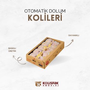 Tasarımın Baskılı ÇeşitliliğiMarkanıza özel baskılar, otomatik dolum kolilerini aynı zamanda etkili bir pazarlama aracı haline getirir. Logolar, marka renkleri ve diğer tasarımların kutulara uygulanmasıyla profesyonel bir havaya bürünürler.Otomatik dolum kolileri nerelerde kullanılır?Kolispak’ın otomatik dolum kolileri, farklı sektörlerde geniş bir şekilde kullanılmaktadır.Gıda ve içecek endüstrisinde otomatik dolum hatları kullanılarak gıda ürünlerinin hijyenik ve güvenli bir şekilde paketlenmesi sağlanmaktadır.Kimya ve Temizlik Ürünleri için, hem sıvı hem de toz formundaki ürünlerin taşınmasında sağlam çözümler sunulmaktadır.