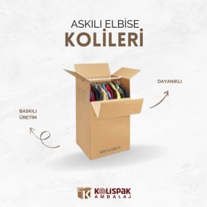 Boyut, renk ve baskı seçenekleri ile markanızın kimliğine uygun tasarımlar elde edebilirsiniz. Bu da markanızın tanıtımını güçlendirir.Askılı Elbise Kolilerinin AvantajlarıŞekil KorumaAskılı elbise kolileri, elbise ve diğer tekstil ürünlerinin düzgün bir şekilde taşınmasını sağlar. Ürünler askıya yerleştirildikten sonra, şekil bozulması ve kırışıklık oluşumu önlenir.Zarif ve Düzenli SunumModa ve tekstil sektöründe estetik ve düzen çok önemlidir. Askılı koliler, ürünlerin şık bir şekilde taşınmasını sağlayarak, müşterilere daha profesyonel bir sunum yapmanıza yardımcı olur.Güvenli TaşımaHassas ürünlerin taşıma sırasında zarar görmesini engeller. Kolinin kapalı yapısı, dış etkenlere karşı koruma sağlar.Verimli LojistikKolispak askılı elbise kolileri, taşıma sırasında yerden tasarruf sağlar ve lojistik süreçleri kolaylaştırır. Ayrıca, kolilerin üst üste istiflenebilmesi, depolama alanının daha verimli kullanılmasına olanak tanır.### Kolispak Askılı Elbise Kolilerinin Kullanım AlanlarıModa ve Tekstil SektörüElbise, ceket ve kaban gibi ürünlerin üretimden mağazaya veya müşteri adresine güvenli ve düzenli bir şekilde taşınmasını sağlar.E-Ticaret ve Perakende:Online satış yapan firmalar için, müşterilere hasarsız ve şık bir ürün teslimatı sağlamak, ideal bir çözümdür.Üretim ve Depolama:Tekstil üreticileri ve toptancıları, ürünlerini güvenli bir şekilde depolamak ve taşıma sırasında düzenli bir biçimde muhafaza etmek amacıyla askılı elbise kolilerinden yararlanabilirler.Kolispak ile Güvenli ve Şık Askılı Elbise KolileriKolispak, Gaziosmanpaşa Elmabahçe Sanayi Bölgesi’nde bulunan modern tesisinde, tekstil sektörü için özel olarak tasarlanmış askılı elbise kolileri üretmektedir. Hem dayanıklı hem de estetik açıdan şık olan bu koliler, moda dünyasında önemli bir ambalaj çözümü haline gelmiştir.Eğer siz de tekstil ürünlerinizi güvenli bir şekilde taşımak ve şık bir biçimde sunmak istiyorsanız, Kolispak’ın uzman ekibiyle iletişime geçebilirsiniz.Kolispak ile her elbise ve tekstil ürünü, güvenle ve zarafetle taşınır!