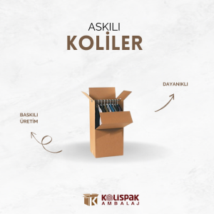 Askılı koli, özellikle tekstil sektöründe tercih edilen, kıyafetlerin kırışmadan ve zarar görmeden taşınmasını sağlayan özel tasarlanmış taşıma kolisidir. Askılık aparatı sayesinde giysiler askıda durur, bu da hem görsel düzen hem de hijyen açısından büyük avantaj sağlar. Askılı koli modelleri, mağaza ve üretici firmalar tarafından sıkça kullanılmaktadır.