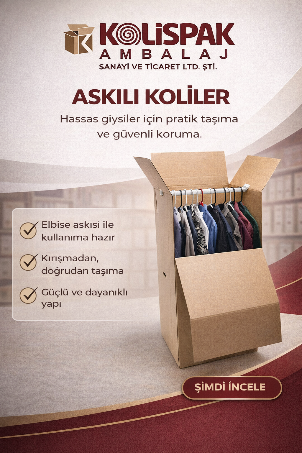 Ayrıca askılı koli, sadece koruyucu bir ambalaj değildir. Aynı zamanda tekstil lojistiğinde düzen kuran, ürün ayrıştırmasını kolaylaştıran ve profesyonel sevkiyat standardı oluşturan bir çözümdür.